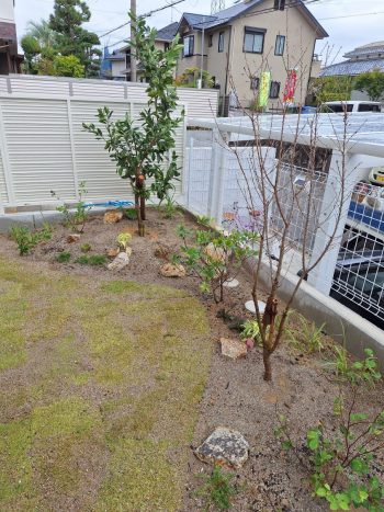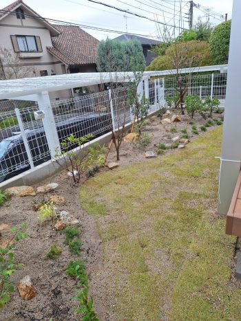 植物は成長するので植え過ぎず成長を楽しめるお庭に仕上がりました。